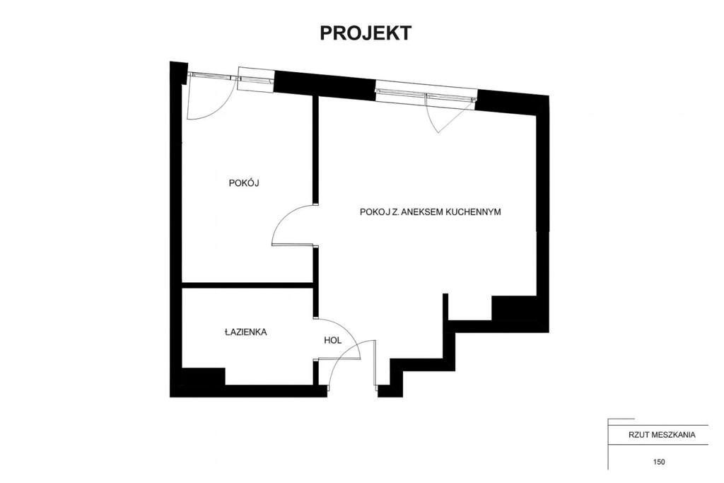 - jasny salon połączony z miejscem na aneks kuchenny, tworzący otwartą, przestronną strefę dzienną, z wyjściem na balkon,