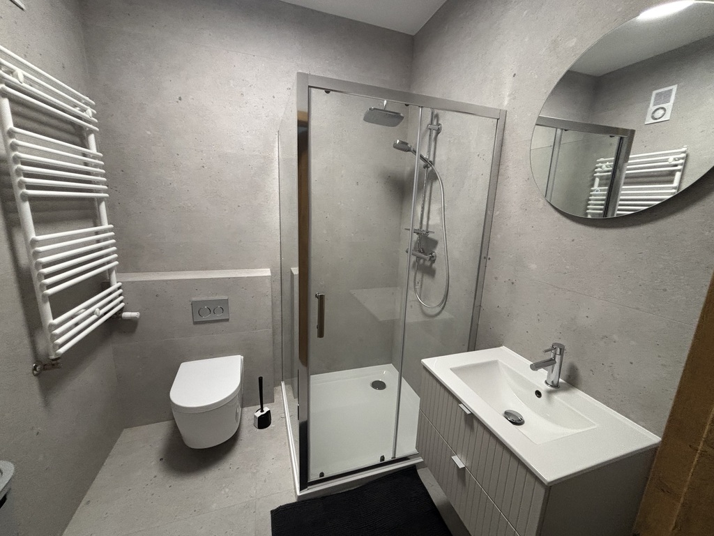 - Kuchnia w pełni wyposażona: lodówka, zmywarka, kuchenka indukcyjna, piekarnik