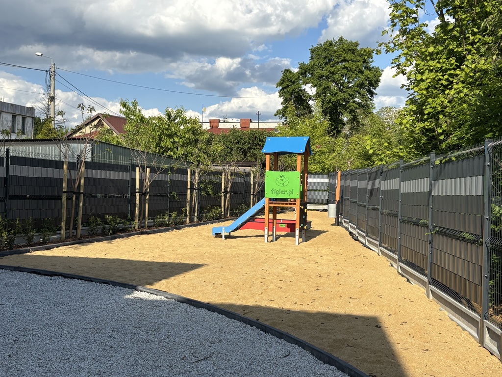 Teren ogrodzony, mieszkańcy mają do dyspozycji również ogrodzony plac zabaw.